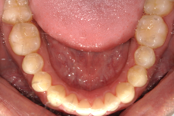 また、前歯の噛み合わせが弱いため、奥歯の負担が強く歯のすり減りが多く見られました。
