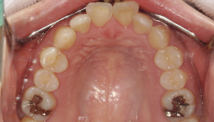 - 患者様の頑張りもあり歯並びがキレイになりました。今後は保定装置を着用し、後戻りを防止しながら、キレイな状態を維持するため、定期的にメンテナンスを行っていきます。