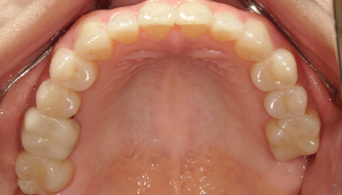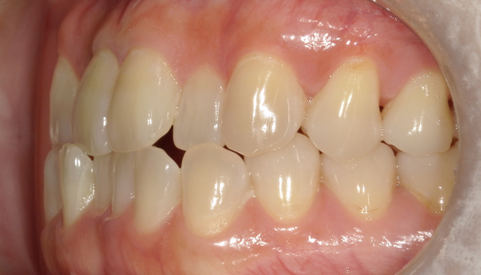 左右2番目の前歯が反対咬合で十分に噛めていない状態です。