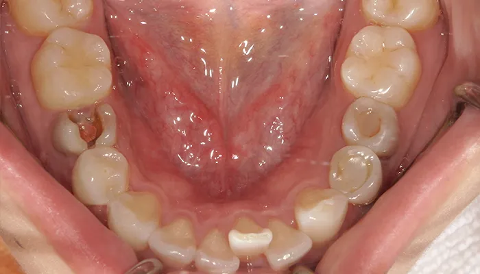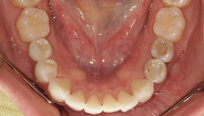 また、下顎前歯部を中心に叢生があり、歯列が不均一でした。咬合関係が不安定で、清掃性も低下していました。