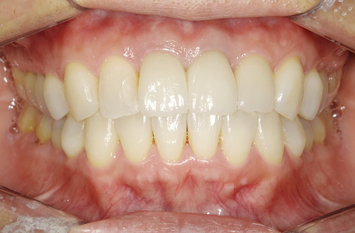 インビザラインによる矯正治療終了後、キレイになった歯に合わせて前歯のセラミック治療を行うことを提案